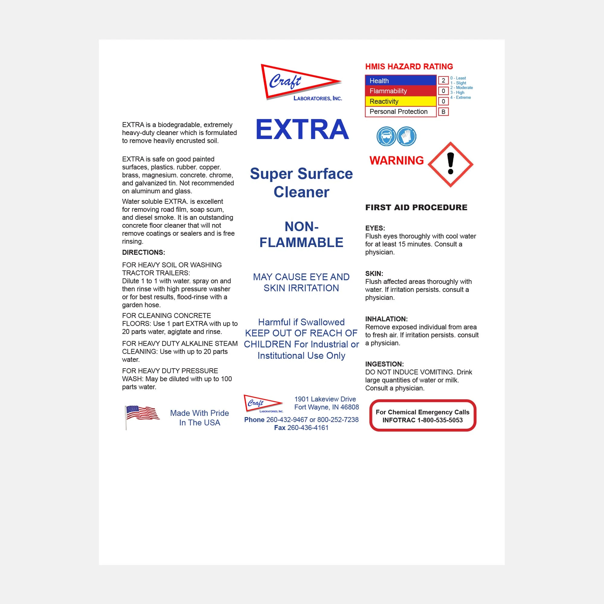 Extra is formulated for the toughest industrial cleaning tasks. Safe on most painted surfaces, rubber, copper, brass, chrome, and concrete, it strips away encrusted grime, diesel smoke, and soap scum with ease. Its biodegradable, non-flammable formula makes it a reliable choice for heavy-duty degreasing without harsh solvents.