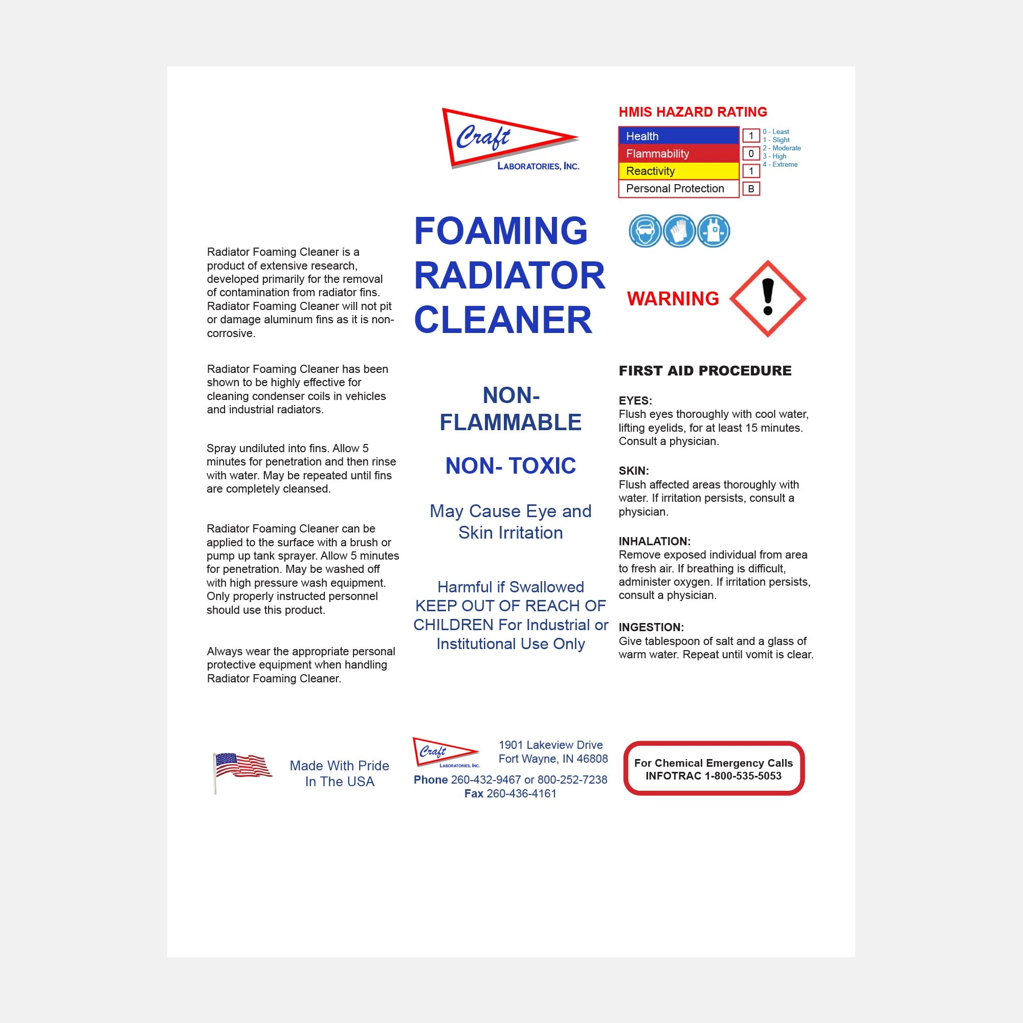 Foaming Radiator Cleaner is engineered for the safe and effective removal of dirt, oil, and contaminants from vehicle and industrial radiator fins. Its non-corrosive formula will not pit or damage aluminum and works by expanding into hard-to-reach areas to loosen deposits for easy rinsing. Non-flammable, non-toxic, and easy to apply, this cleaner is a must-have for maintaining peak cooling performance in cars, trucks, and heavy equipment.