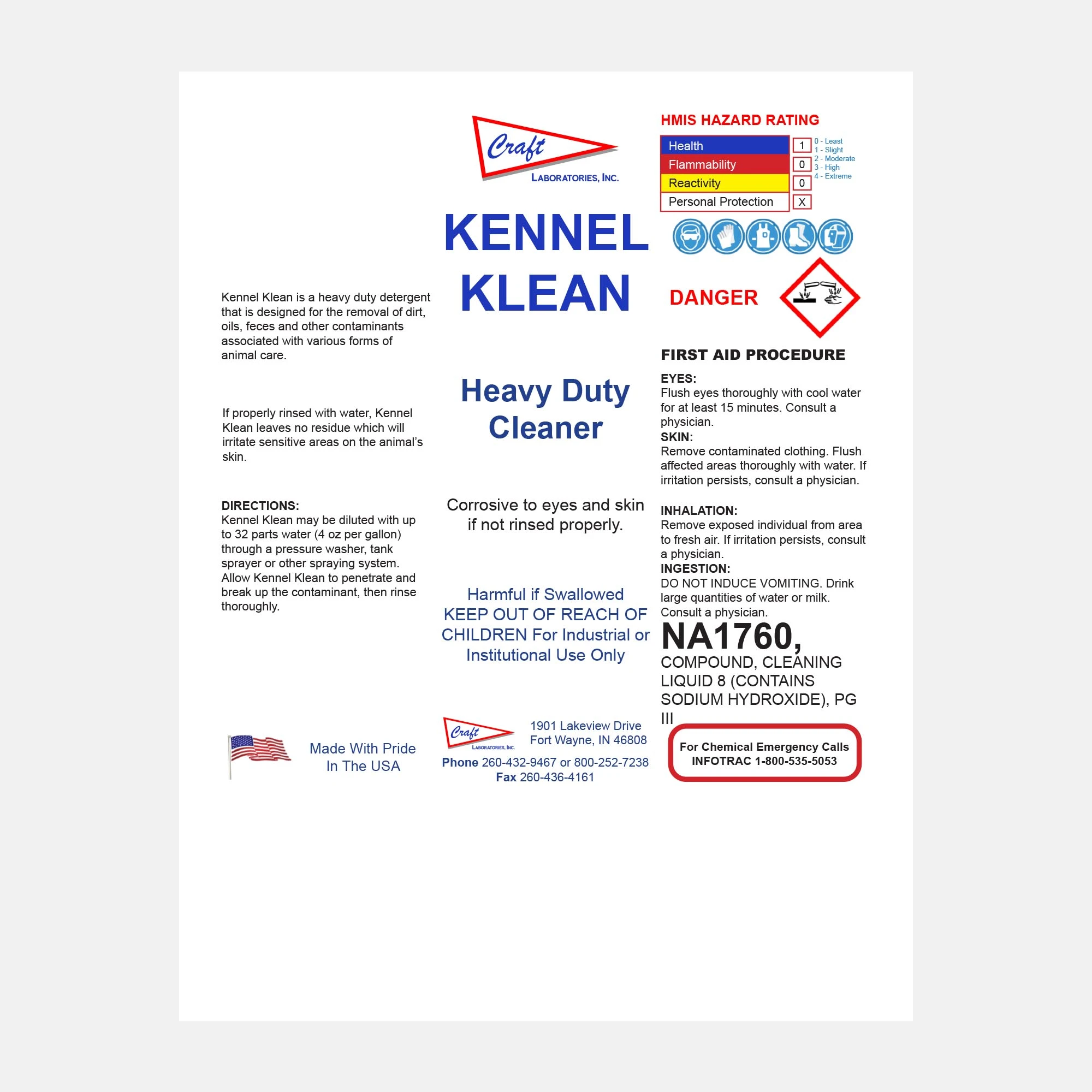 Kennel Klean is a concentrated detergent designed for use in kennels, veterinary clinics, animal shelters, and grooming facilities. Its powerful formulation penetrates and breaks down tough organic buildup such as grease, fecal matter, and urine residues, leaving surfaces clean and sanitized.