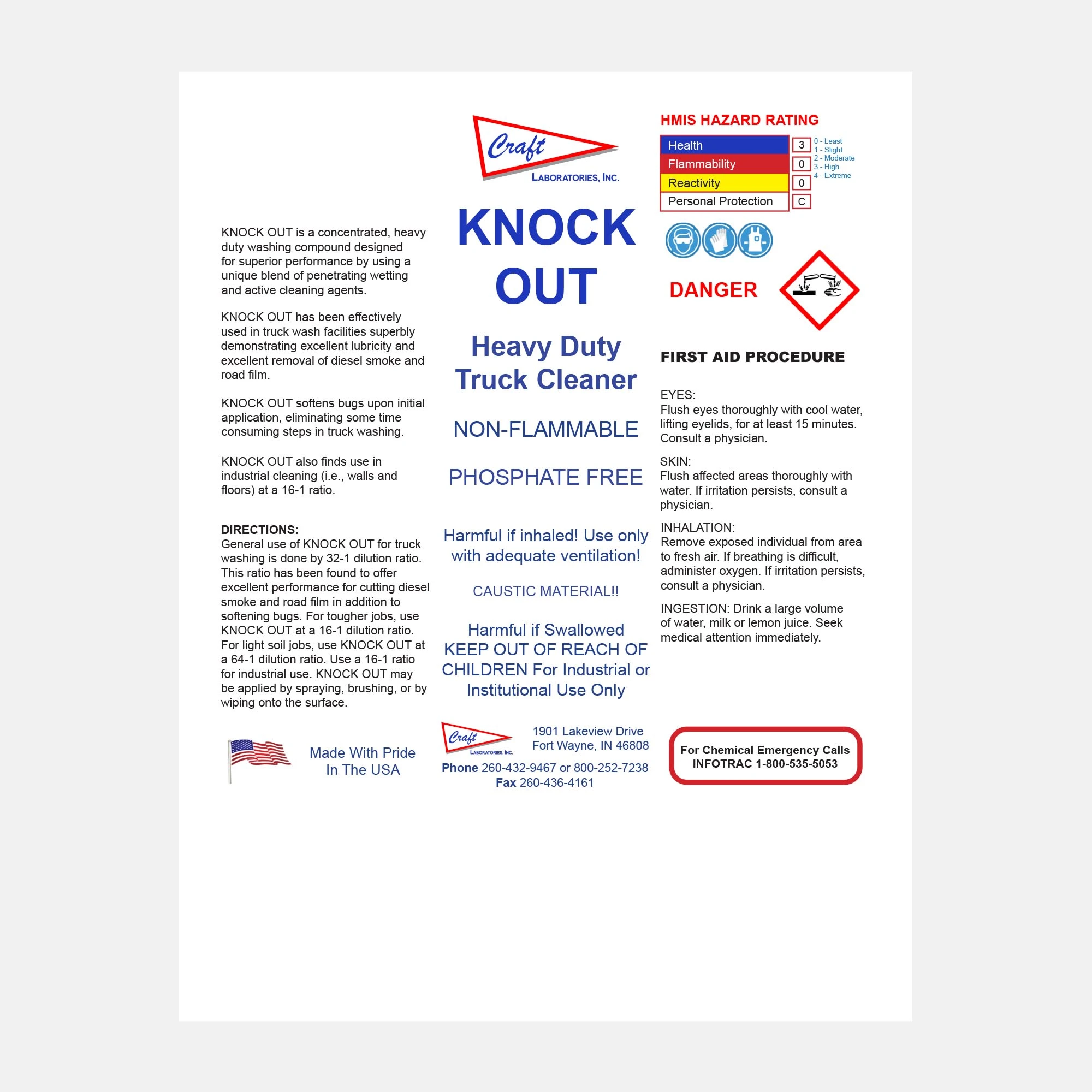Knock Out is a concentrated, phosphate-free cleaner built for the trucking industry. Its penetrating wetting agents break down diesel smoke, grease, road film, and bug residue quickly. Also effective for industrial applications such as walls and floors. Contains Sodium Hydroxide for extra cleaning strength.