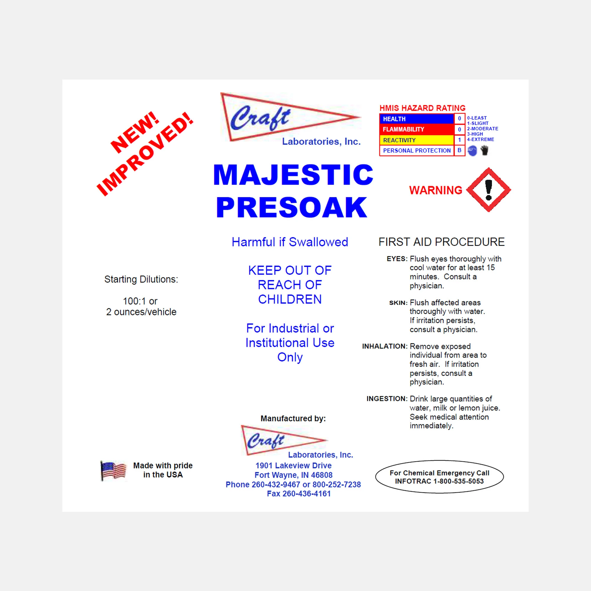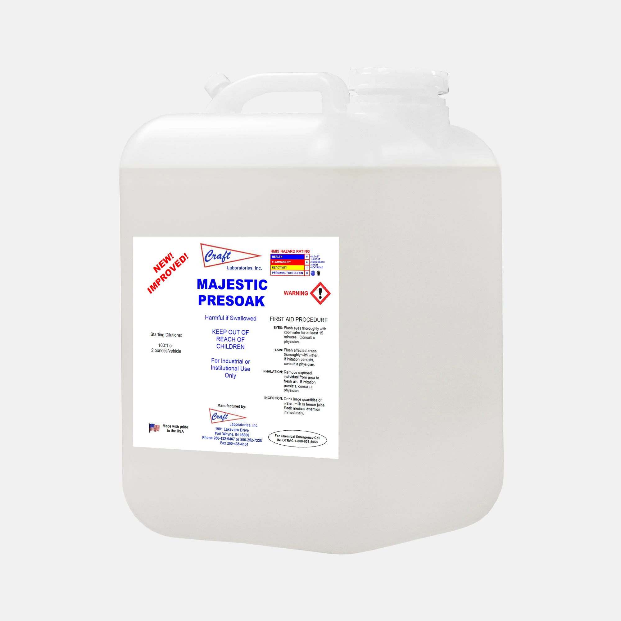 Majestic Presoak is a high-performance cleaning solution formulated to prepare heavily soiled surfaces for effective washing. Its concentrated formula penetrates and loosens dirt, grime, and contaminants, improving overall cleaning efficiency.