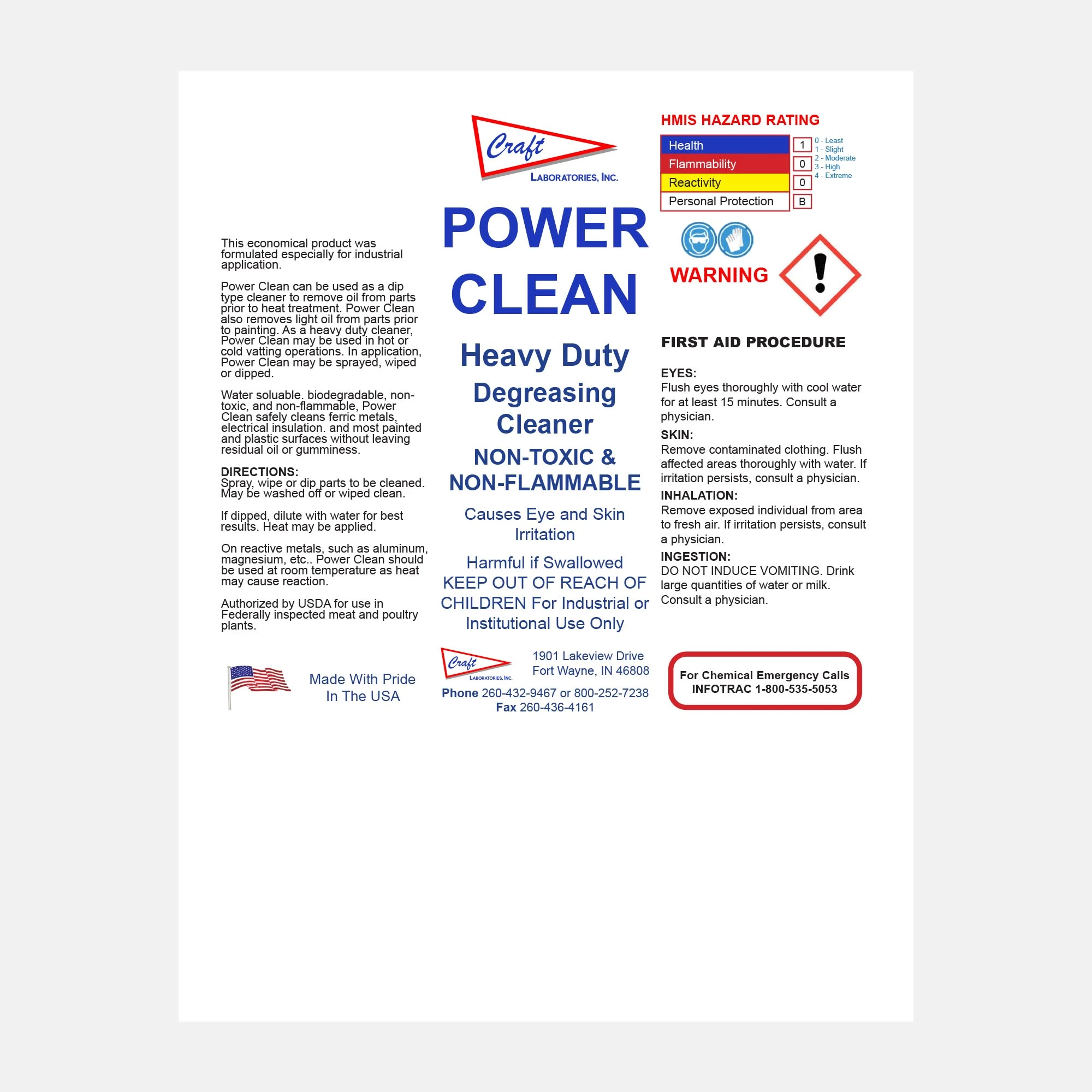 Power Clean is a USDA-authorized cleaner formulated for industrial degreasing applications. It removes oils before heat treatment or painting, and is effective in dip tanks, vatting operations, or spray cleaning. Non-toxic, biodegradable, and non-flammable, Power Clean is trusted for use in federally inspected meat and poultry facilities.
