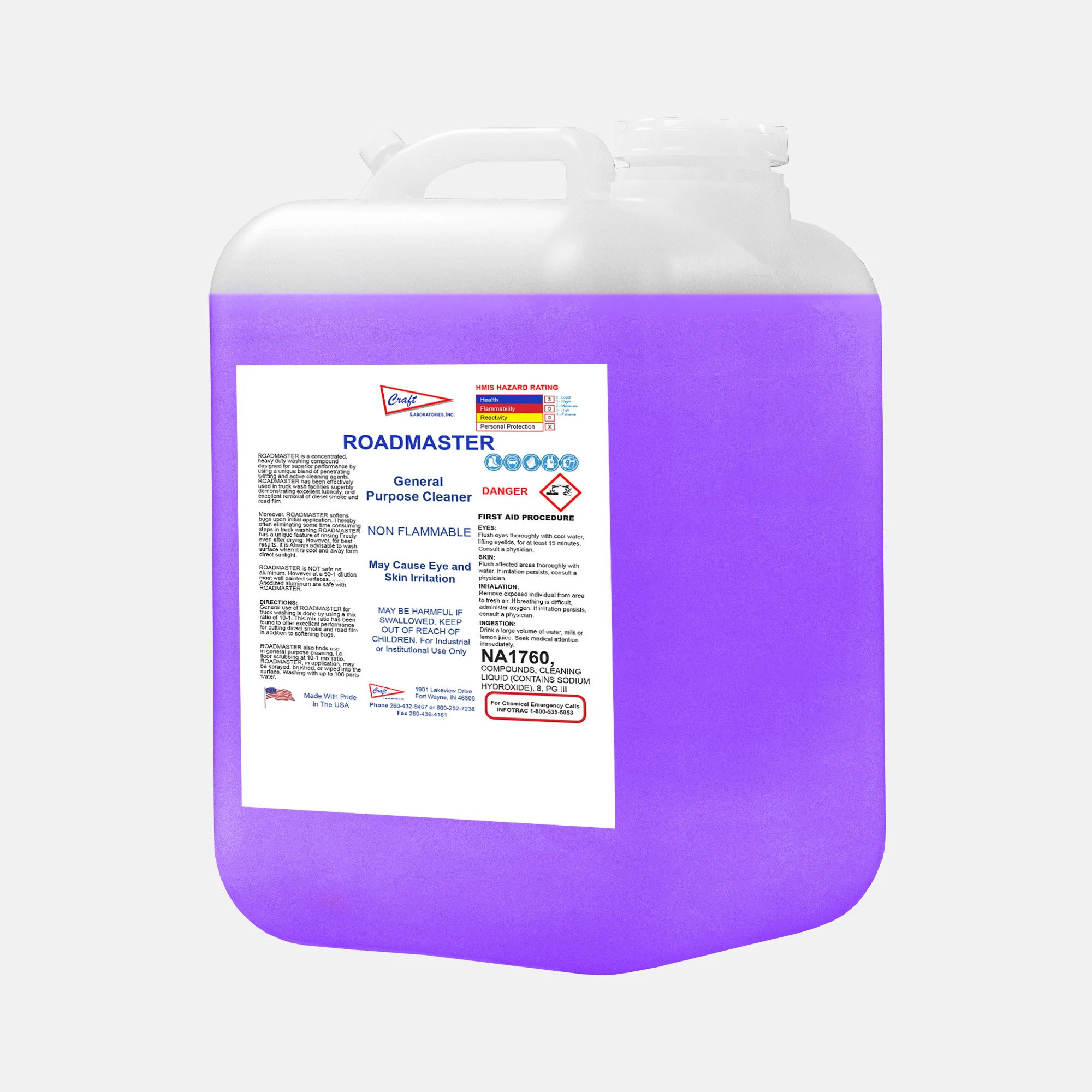 Roadmaster is a heavy-duty wash compound engineered for truck washes and fleet maintenance. It loosens bug residue and tough soils quickly, reducing manual scrubbing and time-consuming prep steps. Safe for anodized aluminum and painted surfaces (with proper dilution), it is highly effective in cutting grease, dirt, smoke, and exhaust deposits. Roadmaster can be used in pressure wash systems or as a general-purpose cleaner across a variety of industrial settings.