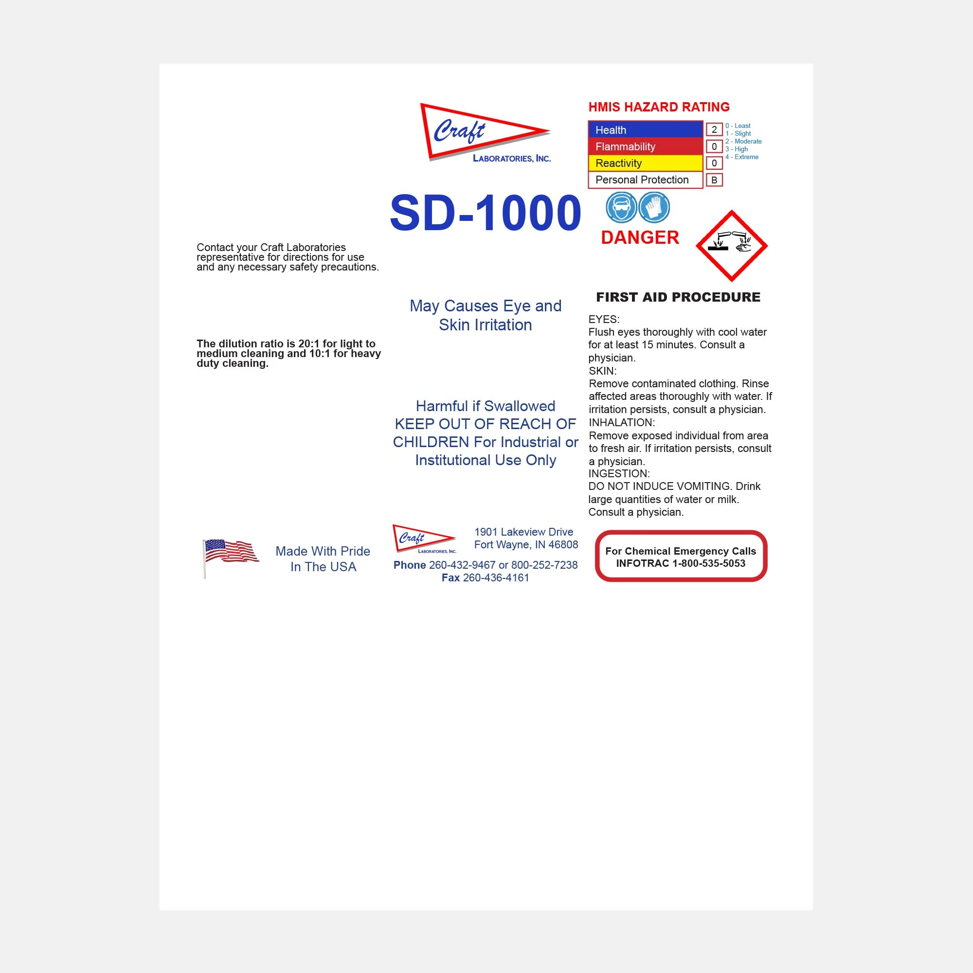 SD-1000 is a concentrated industrial cleaner designed to handle a wide range of soils. Biodegradable and effective at varying dilutions, it is versatile enough for general cleaning yet strong enough for heavy-duty degreasing. Safe on most washable surfaces, it’s an economical choice for industrial and institutional users.