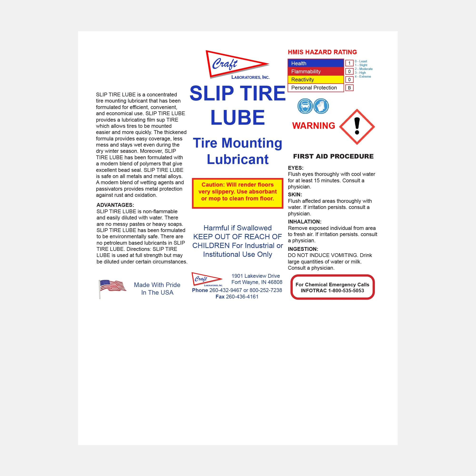 Slip Tire Lube is a concentrated tire mounting lubricant formulated for efficient, clean, and economical use. Its smooth, lubricating film allows tires to mount faster, easier, and with less mess—ideal for all-season application and professional results.